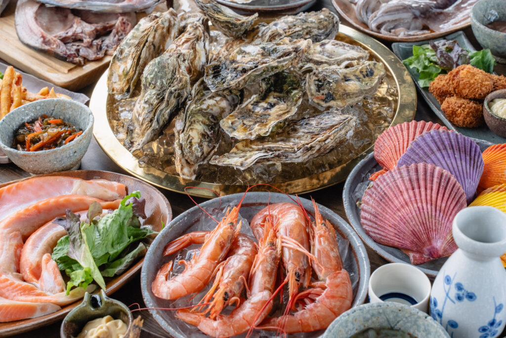 牡蠣だけではなくバラエティに富んだ海鮮や肉串を豊富に取り揃え、